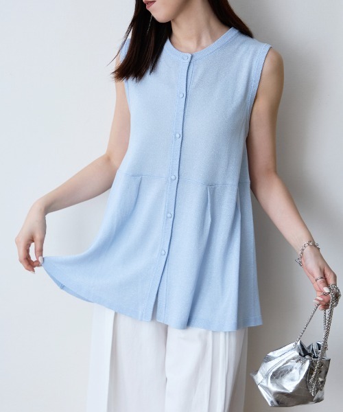 \\ペプラム ラメニット ベスト/ジレ//華やかさと軽やかさを纏う、きれいめラメベストラメ糸を織り交ぜた、ほのかにきらめく素材が魅力のニットベスト。柔らかなカラー展開「ブラック、ライトブルー、ライトベージュ」でオン・オフ問わず活躍する一枚です。ウエスト切り替えから自然に広がるペプラムシルエットが女性らしい立体感とやさしい印象を演出してくれます。前開きのボタン仕様で、ジレとしてもプルオーバー感覚でも着用可能。シンプルなコーディネートに重ねるだけで、洗練された着こなしが叶うアイテムです。✔️ ラメ入りで控えめな華やかさをプラス✔️ ペプラムシルエットで腰まわりをふんわりカバー✔️ 前開きデザインでジレとしても使える2WAY仕様✔️ ロングシーズン使える軽やかなニット素材【STYLING POINT】・ カットソーやTシャツにレイヤードして、シンプルスタイルにアクセント◎・モノトーンや無地コーデに重ねるだけで着映え感がアップ!・ボタンを開けて羽織りとして使えば、季節の変わり目にもぴったりな軽羽織に・シャツワンピースやマキシ丈ワンピースに重ねれば、縦ラインが強調されてスタイルアップ・甘さのあるペプラムが、フェミニンなアクセントに。・センタープレスパンツと合わせて、きれいめなオフィスカジュアルにも・ ほんのりラメ感が、大人の上品さを演出してくれます。■TRIANGLE PALETTE/トライアングルパレット何気ない日常も、どこか特別に。シンプルだけど、ちゃんと今の気分を感じられる。大人の毎日にそっと馴染み、自然体の自分を引き立てるスタイルを提案します。@trianglepalette_zozotownインスタグラムでは発売前のアイテムやクーポン・お買い得情報など様々な情報を配信中!■お気に入り登録がオススメ・「商品のお気に入り登録」で再入荷通知や、ラストの通知、セール通知も受け取ることが出来ます。・「ブランドのお気に入り登録」で新商品や再入荷など、お得な情報を受け取ることが出来ます。※商品画像は撮影時の光や角度により、実物の色味と異なって見える場合がございます。※生産時期により色・素材・サイズ感など多少異なる場合がございます。予めご了承ください。