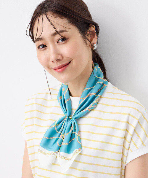 《クラシックなプリントが上品な印象を演出する冷感スカーフ》 綺麗なシルエットになるよう縫い留められており、スタイリングもスマートに決まります。 マグネットパーツがついていて簡単に着脱することができる手軽さも嬉しいポイント。 シンプルなTシャツやカットソーと合わせたコーディネートがおすすめです。 【デザインポイント】 ・脱着簡単で人気のワンタッチスカーフです。 ・おしゃれに見えて涼しい優れものです。 【機能】 ・暑い夏を快適に過ごせる接触冷感加工をしています。 【着用シーン】 ・デイリー、ショッピング、女子会、旅行、レジャー、行楽、お出かけ、ランチ会、デート、学校行事、オフィスカジュア、通勤、仕事 【カラーバリエーション】 ・モカ(茶)...秋まで長く使えるモカは顔回りを優しく魅せます。 ・ベージュ...明るさのあるベージュはコーディネートに明るさを。 ・ネイビー(紺)...フォーマルなシーンで華やかさをプラスするならネイビーが馴染みやすくておすすめです。 ・ブルー(青)...爽やかな夏らしいブルーはTシャツと好相性です。 【サイズバリエーション】 ・フリー(FREE) 【ブランド紹介】 French Casualーフェミニンに生きる女性のためのリアルクローズがPetit Honfleur(プチオンフルール)。 カジュアルをベースに、ほどよくトレンドを落とし込んだアイテムは大人可愛く、“映え”間違いなし! 着こなしやコーディネートで旬のスタイリングを提案します。 【お買い物をお得にもっと楽しんで頂くために】 ▼商品のお気に入り登録▼ 完売カラーの再入荷通知や、ラスト1点の通知、プライスダウンしたセール通知も受け取ることができます。 ▼ブランドのお気に入り登録▼ 新作や再入荷等、いち早くブランドのお得な情報を受け取ることができます!