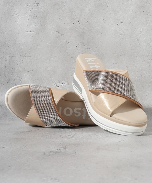 HSK SELECT Shoes.No.1025/ハスキーKITSON/キットソン 【デザイン・履き心地】 こちらのスポーツサンダルは、春夏シーズンに最適なアイテムです。 傾斜のあるデザインが美脚効果を引き出し、大人の女性にぴったりのきれいめスタイルを演出します。 軽量で履き心地の良いクッション性も魅力です。 キラキラとしたグリッター素材が使われており、足元に華やかさをプラス。 カジュアルなデニムやゆったりとした服装にも合わせやすく、様々なスタイルに対応できます。 これにより、普段のお出かけから友人とのランチ、ちょっとしたお散歩まで幅広いシーンで活躍するアイテムです。 軽やかさを感じながら、スタイリッシュに春夏の季節を楽しむことができる1足。 アウトソールのラインは視覚的なメリハリを生み出し、足元をすっきりと見せる効果もあります。 【サイズに関して】 普段23.5を着用している足が華奢なスタッフがMサイズを着用でゆったりでした。 サンダルなので足が細めの方は普段のサイズよりワンサイズダウンでも良さそうです。 【カラー】 ブラック・ベージュ・シルバー KITSON/キットソン 「kitson」はアメリカLA.発のセレブ御用達のセレクトショップです。 2000年3月にロサンゼルスに第1号店を出店、2008年に日本上陸して以来、『ファッションだけでなく、理想のライフスタイルを提案しているkitson』は国内でも高い支持を受けており、そのkitsonファンの中にはセレブリティやモデルも多く、彼女達が身につけた事で、日本でもブランドとして認知されました。 【お買いものをお楽しみいただく為の方法】 ★商品のお気に入り登録★ ・完売カラーの再入荷通知や、ラスト1点の通知、セールの通知も受け取ることができます。 ★ブランドのお気に入り登録★ ・新商品や再入荷など、いち早くブランドのお得な情報を受け取ることができます!