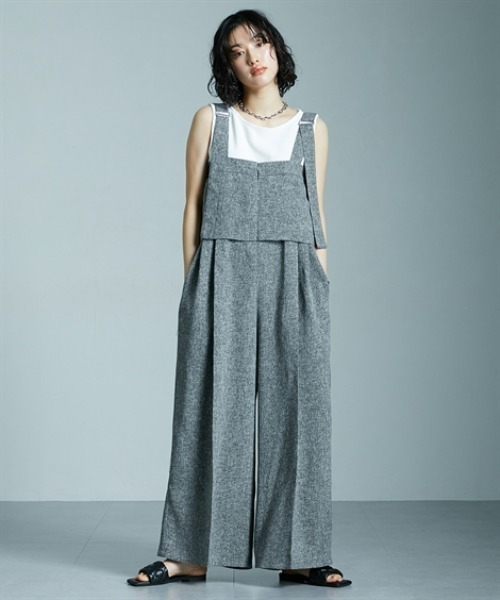 ■デザイン ・ドライな質感が際立つサマーツイード仕立てのワイドサロペット ・胸当てとワイドパンツを繋ぐ直線的なシルエットが醸す洗練感 ・肩ストラップと背中ギャザーによる立体的なニュアンス ・ヒップや太ももを自然にカバーする深めのタックとワイドな落ち感 ・素肌を覗かせるアームホールで抜け感と涼感を演出 ■素材 ・季節感と上品さを兼ね備えた軽量サマーツイード素材 ・表面に凹凸感のある杢調ミックスで立体的な風合いを表現 ・さらりとした肌離れと通気性を両立する清涼感 ・ナチュラルな風合いで日常にも馴染むカジュアルライクさ ■おすすめのスタイリング ・ノースリーブインナーと合わせた夏らしい抜け感スタイル ・リブTやカットソーでリラクシーなカジュアルダウンコーデ ・きれいめブラウスを仕込んだモードミックスな着こなし ・シルバーアクセと組み合わせた都会的レイヤード提案 【Soiunique/スワユニーク】唯一無二のアナタへ――― カジュアル×モードスタイルをベースに、 ストレスフリーなサイズ設計で どこかに”抜け感”と”格好よさ”を感じさせる商品をご提案。 体型カバーやスタイルアップも叶えつつ、 コンプレックスを個性にして自分のスタイルを貫く唯一無二のアナタへ。 <仕様> [表地]ポリエステル93%・レーヨン7%(織物)[裏地]ポリエステル100% バスト後ゴム入 後ファスナー 透け感:なし 伸縮性:なし 生地の厚み:普通 光沢感:なし 裏地:あり ポケット:あり(両脇2) 季節:春・夏・秋向き シルエット:普通 <洗濯方法> 手洗い ■キーワード 20代、30代、40代、50代、60代、70代、Soiunique、お洒落、かわいい、ぽっちゃり、ゆったりサイズ、ゆるっと、オーバーサイズ、オーバーシルエット、カジュアル、サロペット、シンプル、スワユニーク、ツイード、デイリー、パンツ、ベーシック、ボトム、モード、ラフ、ワイドパンツ、体型カバー、定番、日常使い、日常着、普段着、楽ちん、華奢見せ