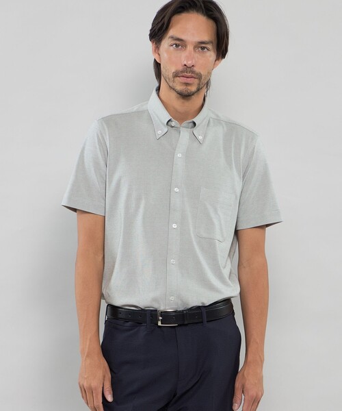 【着用推奨シーズン:春夏】 <素材> 定番のハイゲージ鹿の子よりも一角ゲージを下げ程よいカジュアル感を持たせた素材で、タイドアップしないスタイルにもおススメです。織物と違いジャージ特有の柔らかさとストレッチ性があり、非常にリラックスした着心地の生地に仕上げています。メランジ調になるよう特殊な綿糸を使用することで奥行きのある色味に仕上がりました。オーガニックコットン、リサイクルポリエステル原料を使用しています。 <デザイン> ・ボタンダウンカラー ・オリジナルロゴ入り白蝶貝釦使用 ネック、アームホール下部にデオテープを配し消臭機能を持たせています。 今シーズンから着丈を各サイズ+3cmに変更しています。