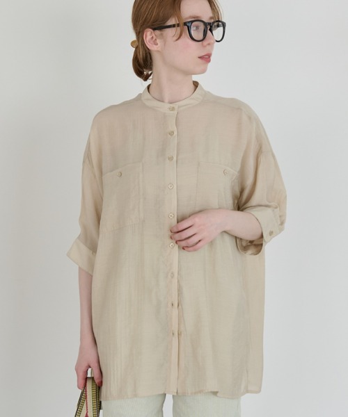 【大人っぽい上品な透け感がポイントのオーバーサイズシアーシャツ】・ゆったりとしたオーバーサイズにすっきりとした印象のバンドカラーを組み合わせたデザイン・大きめのポケットがカジュアル感をプラス・後ろヨークのミニロゴはボディのカラーに合わせたさりげない色味に・滑らかな風合いで肌離れも良く、通気性も高い快適な素材感~スタイリング~総柄のハーフパンツと異素材の組み合わせを楽しむのはもちろん、デニムを合わせてカジュアルに着るのもおすすめです。トップスとしても羽織りとしても使える万能アイテム。程よい透け感でコーデに取り入れるだけで大人っぽくこなれた雰囲気に。ワードローブに1点あると重宝するアイテムです。- - - - - - - - - - - - - - - - - - - - - - - - - - - - - - - - -透け感:あり裏地:なし伸縮性:なし光沢感:ややあり洗濯: 自宅洗濯可能(ネット使用推奨)- - - - - - - - - - - - - - - - - - - - - - - - - - - - - - - - -●同じ型で生地違いのシャツもご用意してあります。ハーフスリーブストライプオーバーシャツ[c1R3608]アイテムページはこちら※着用、お取り扱いの際は、商品についている品質表示とアテンションタグを必ずご確認下さい。シアートップス/ベーシックシャツ/夏服
