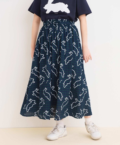 <run rabbit>軽やかに楽しそうに飛び跳ねるウサギをクラシカルなタータンチェックの上に並べました。ほんのり透け感があり、凸凹と表面感のある生地は風にふわっとなびいて涼しげです。柄が映えるシンプルなギャザースカート。ぺチスカートと別々で着られる仕様にし、デニムの上からなどレイヤードも楽しめるようデザインしました。合わせ方次第でシーズンレスに◎コーディネートの主役になってくれます。カラー展開: グリーン/レッド【run rabbit series】ブラウス(9501BL012251)Tシャツ(9501CT006251)バッグ (9501BG006251)キャップ (9501HT002251)※着用商品はサンプルです。実際の商品と仕様、加工、サイズが若干異なる場合がございます。サンプルからの変更点:ウエストが後ろゴム+ヒモでサイズ調整できる仕様になります。※光の関係で実物の商品の色味とは若干異なる場合がございます。実際に近い色味は詳細画像をご参照下さい。※取り扱いの注意については取り扱い表示をよくご確認の上、着用をお願いいたします。【素材の特性、お取り扱いの注意】・この製品は、レーヨン素材を使用しておりますので、下記の点にご注意下さい。洗濯後に毛玉ができたり糸引きが起こることがありますので、あらかじめご了承ください。繊維の性質上、若干色ムラがあります。多少色落ちし、縮むことがあります。水に濡れると強度が落ちますので洗濯の際はクリーニングネットを使用するなどして下さい。水に濡れたままの状態で強くこすったり、引っぱったりすると破れる恐れがありますのでご注意下さい。長時間の浸漬や濡れたままの放置は避け、洗濯後すばやく干して下さい。・この製品を洗濯する際には多少縮む場合がありますので、形を整えてから日陰で干して下さい。・タンブラー乾燥はお避けください。塩素系漂白剤はご使用にならないでください。色が変わることがあります。IAMI IN FACT...アイアムアイインファクトわたしはわたし1年のうちすこしだけおとこのになれたらいいのにでもふと思い出すフリルやピンクにあこがれた小さいころのじぶんいくつになっても消えることのない少年少女の心を大切にチャーミングボーイ ドリーミーガール