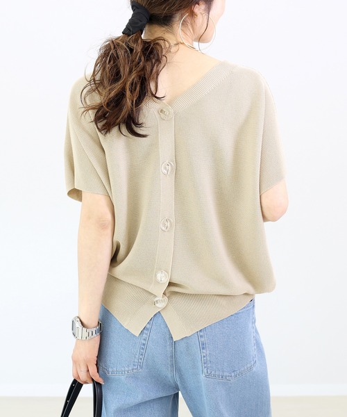 【さらり快適な着心地の高見え夏カーデ】 落ち感あるレーヨン混素材が高見えする夏カーディガン。 バックボタンデザインでプルオーバーとしても着られる2WAY仕様です。 ガーター編みが涼しげで蒸し暑い日でも快適な着心地。 ゆったりしたドルマンシルエットは着痩せにも効果的です。 なめらかなシームレスな袖口が品の良さを際立たせ、Vネックが抜け感ある印象を演出します。 大きめのクリアボタンが涼感あるアクセントに。 ゆったりした着心地ながらもだらしなく見えず、上品な雰囲気が漂う頼れる夏カーデです。 ■生地の特徴 伸縮性に優れてノンストレスな着心地のサマーニット素材。 ポコポコとした立体的な編地が表情豊かで、涼し気な雰囲気。 ■重さ 約260g …………………… 伸縮性:ややあり 透け感:あり 裏地:なし ポケット:なし …………………… ※ニットの特性上、サイズには多少の誤差が生じる場合がございます。ご了承の上お買い求めくださいませ。 ※照明の関係より、実際の色よりやや明るく見える場合がございます。 またブラウザ環境の違いにより若干商品と画像の色目が異なる場合がございます。 予めご了承くださいませ。 …………………… 【スタッフ着用コメント】 ▼身長:151cm、普段のサイズ:トップス:S~M、ボトムス:S~M 着丈はヒップから3cm下。袖丈は肩から22cm下。 サラッとした生地で編み目が詰まっていないので夏も着れそうです。 二の腕の隠れる袖丈で安心です。 ▼身長:159cm、普段のサイズ:トップス:M、ボトムス:L 着丈はヒップが少し出るくらい。袖丈は肩から16cm下。 身幅には大分ゆとりがあります。裾は苦しさはないですがピタッとする感じです。 生地がしっかりしていてラインを拾わずゆったり着れます。 ▼身長:161cm、普段のサイズ:トップス:M、ボトムス:M~L 着丈はヒップが少し出るくらい。袖丈は肩から19cm下。 身幅は広めで体のラインを拾わずゆったりしています。 袖口も広くゆとりをもって着れます。裾のリブは腰やヒップに軽くフィットします。