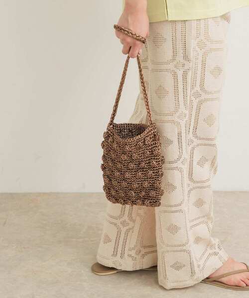上品な光沢感が魅力のミニショルダーバッグ。 ポコポコと凹凸のある編地が可愛らしく、コーディネートのワンポイントに。 スマートフォンやミニ財布、リップ・ハンカチなどが入るサイズで、アクセサリー感覚でお持ちいただけます。 大人が取り入れやすい、落ち着いたカラー展開でご用意しました。 シンプルなワンピースやデニムアイテムと合わせていただくのがおすすめ。 【2025 Spring/Summer】【25SS】 総重量 : 約125g ※商品画像は、光の当たり具合やパソコンなどの閲覧環境により、実際の色味と異なって見える場合がございます。予めご了承ください。 ※商品の色味の目安は、商品単体の画像をご参照ください。 ▼お気に入り登録のおすすめ▼ お気に入り登録商品は、マイページにて現在の価格情報や在庫状況の確認が可能です。 お買い物リストの管理に是非ご利用下さい。 One