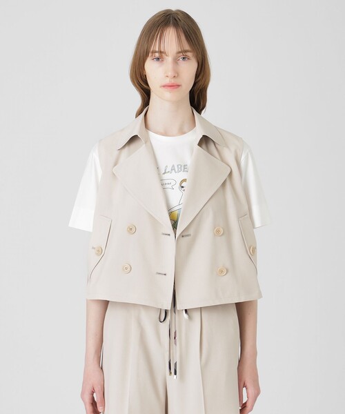 ◆スタイリングのアクセントとして活躍するショートベスト 【Design】 スタイリングのアクセントになるショートベストです。 トレンチコートからインスピレーションをうけてデザインしました。 普段のスタイリングに一枚プラスするだけでお洒落度がぐんとアップするアイテムです。 【Fabric】 防シワ・接触冷感・吸水速乾機能を備えた素材です。