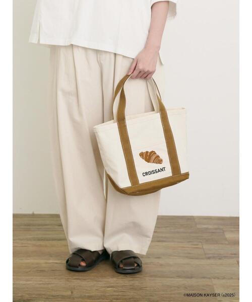 【MAISON KAYSER meets Samansa Mos2】 「パンのある幸せな食卓」を提供する「MAISON KAYSER」と「着る事だけでなく、暮らしを楽しむ」をコンセプトとした「Samansa Mos2」のコラボ第2弾。 ポケットに“クロワッサン”と“ヴィエノワーズショコラ”の刺しゅうがそれぞれ施されたキャンバスバッグ。 バイカラーの切り替えがアクセントをプラス。しっかりとした生地感でデイリーユースにも重宝します。 マチ幅が広く収納力もあり、お出かけにもぴったりのアイテムです。 ※商品画像は、撮影環境やお客様のご利用のPC・スマートフォンのモニター環境などにより実物と色味に差異がある場合がございます。