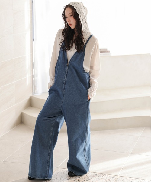大人カジュアルな着こなし叶える抜け感サロペットビスチェ風トップとVネックの抜け感デザインがさりげなく女性らしさを引き立てるサロペット。ゆるっとしたシルエットとすっきり見えの絶妙なバランスで、カジュアルながら上品な印象に仕上がります。Point 01スタイルアップ叶う美シルエットストンと落ちるワイドなストレートシルエットが縦のラインを強調し、すっきりとした印象に。ウエストの切り替えのないシルエットで身体のラインを拾いにくく、細見え効果も◎Point 02こだわりのディティールで着こなし自在華奢な肩紐とフロントジップがトレンド感と機能性を両立。ジップの開閉で印象チェンジも楽しめ、インナー次第でロングシーズン活躍してくれるアイテムです◎■Fabricデニム生地:柔らかくしっかりしたデニム生地ツイル生地:柔らかく、肌なじみの良いコットン混生地---------------------透け感:なし裏地:なし厚さ:普通伸縮性:なし---------------------※肩紐調節可能※サイドポケットあり(ヒップポケットはフェイク)▼《お気に入り登録》でお得な情報がいっぱい▼・「商品のお気に入り登録」で再入荷通知や、ラストの通知、セール通知も受け取ることができます。・「ブランドのお気に入り登録」で新商品や再入荷など、お得な情報を受け取ることができます!