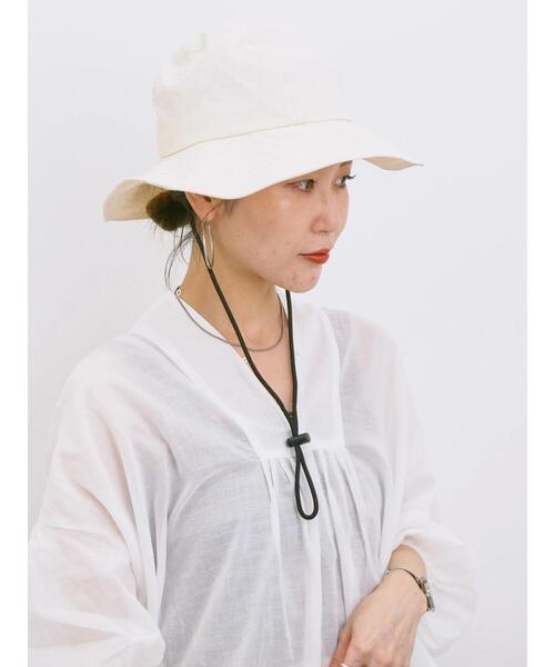 切替をほどこした立体的なクラウンで着用しやすいハット。飛ばされるのを防止してくれるストラップ付き。裏地にはメッシュ地を施し、通気性が良く着用しやすいです。UVカットと撥水加工の機能性素材を使用しており、日差しの強くなる季節の外出時やアウトドアなどの様々なシーンに活躍してくれます。※商品画像は、撮影環境やお客様のご利用のPC・スマートフォンのモニター環境などにより実物と色味に差異がある場合がございます。【その他採寸】F 全長:[つば]8.5cm 幅:[頭囲]55.5cm
