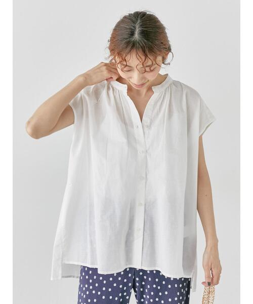 バンドカラーのデザインがすっきりとした印象を与えるブラウス。 コットンリネンを使用した肌触りの良い生地で、快適な着心地を演出します。 前後で長さの異なる裾のデザインがポイント。 1枚で着用するのはもちろん、カーディガンとレイヤードした着こなしもおすすめです 【カラーについて】 画像ではわかりづらい柄の違いがあるため、以下をご参照ください。 オフホワイト→無地 チャコールグレー→無地 グリーン→チェック柄 ネイビー→ストライプ ※商品画像は、撮影環境やお客様のご利用のPC・スマートフォンのモニター環境などにより実物と色味に差異がある場合がございます。 【その他採寸】 F 着丈:[前]65cm[後]71cm