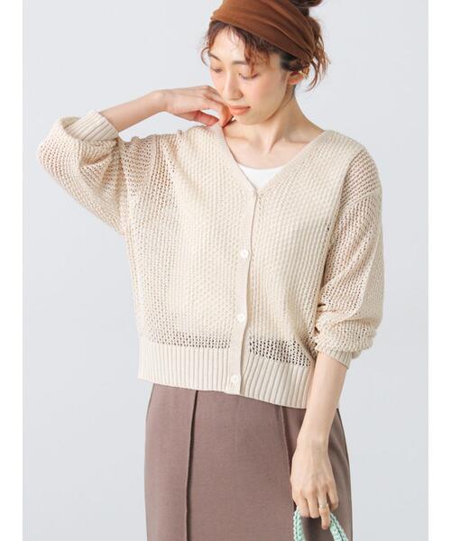 ざっくりとした透かし編みでレイヤードコーデも映えるVネックカーディガン。 爽やかな透け感があり、スタイリングも軽やかな着こなしに決まります。 カジュアルからキレイめにと、幅広く活躍してくれる着回し力の高い1着。 ※商品画像は、撮影環境やお客様のご利用のPC・スマートフォンのモニター環境などにより実物と色味に差異がある場合がございます。