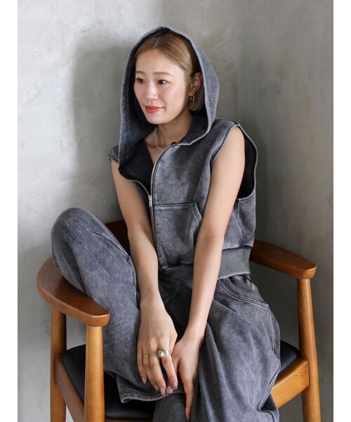 ヴィンテージライクな色落ちがポイントのノースリパーカー■デザイン製品完成後に硫化染めを施すことで、立体感のある色落ちの風合いとなっております。ダブルジップなので、裾側から空けることでシルエットアレンジが可能な仕様となります。大きめのフードとコンパクトな着丈のバランスもポイント。短丈かつ裾は細めにすることですっきりしたシルエットに。アームホールが大きく開いていることで、適度なリラックス感が出るデザインとなります。■生地感裏毛生地を使用。厚すぎないので夏でも着用しやすい生地感です。■サイズ感着丈はコンパクト、ボディーはゆったりのメリハリのあるサイズ感。アームホールも大きめなので、インナーにビッグシルエットのカットソーも合わせやすいサイズ感です。■スタイリングヴィンテージウォッシュスウェットパンツ(品番:1125407210) とのセットアップスタイリングはマスト。シーズンテーマの【CORE】なスタイリングに。・・・・・・・・・・・・・・・・・・・・・・透け感:なし裏地:なし伸縮性:なし光沢感:なし生地の厚さ:普通・・・・・・・・・・・・・・・・・・・・・・※商品画像はサンプルのため、色味やサイズ、素材の混率等の仕様に変更がある場合がございます。予めご了承ください。※生地寄り画像を正規の商品の色味に近づけております。■商品のお気に入り登録再入荷通知やラスト1点、お得なプライスダウンの情報も受け取ることができます。ぜひご登録ください◎
