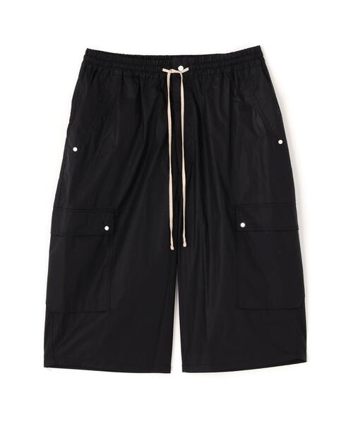 DankeSchon 薄手で軽いカーゴショーツ。 ワイドシルエットにする事でストレスが軽減されスタイルにメリハリを効かせる事ができます。 長めに設定されたダストカラーのウエストドローストリングスは垂らす事で雰囲気がでます。 ペーパーコーティングによって薄手ですが強度と撥水性が上がっています。 やや光沢感も出てラグジュアリーな印象です。 DankeSchon・・・DankeSchonとは、このブランドの核となるキーワード D digitaliyデジタル式 A Architect創造者 N neologism新表現 K kittenish悪ふざけ E engrossing心を奪う の頭文字を組み合わせたものにドイツ語のSchonを付け、ブランドの意図に賛同してくれる人達に感謝の意味を込め、「DankeSchon(ありがとうの意味)」としている。 ファッションのテーマは「ニュースタンダード」。時代に抗うのではなく、すり抜け受け流すことでブランドに見合う要素を抽出し、高品質な素材と、デジタライズなグラフィックを掛け合わせコレクションに落としていく。 純粋なシルエット、ディテールへの徹底したこだわりと同時に、ユニークで新しい見解も積極的に取り入れる。 そこから生み出された製品は、実用的でごく自然に日常に馴染むもの。
