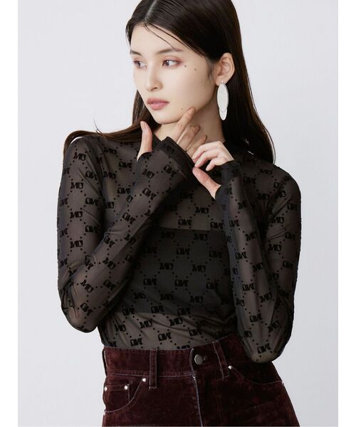1枚でもインナー使いでも映えるトップス秋冬スタイリングに欠かせないアイテム■アイテムMUロゴのオリジナルモノグラム柄をフロッキープリントしたシアートップスです。衿ぐり、裾、袖口を配色の共地でレイヤード風にして引き締めることでメリハリが生まれ、細見え効果も。伸縮性のあるパワーネット素材で着心地も◎フロッキープリントなので、摩擦すると剥げる可能性がありますので、お取り扱いにはご注意ください。--------------------------------------------生地の厚さ:薄手 伸縮性:あり透け感:あり サイズ感:普通--------------------------------------------【知って得する便利機能◎ 】■商品のお気に入り登録再入荷時、ラスト1点の時にお知らせします。■ブランドのお気に入り登録新商品やお得な情報など、いち早くお得な情報をゲット!ぜひご活用ください!※着用画像はフラッシュの加減で実際の製品と色味等が異なる場合がございますので、生地のズームアップ画像をご確認ください。※ご利用の端末画面の設定により実際の商品と色味が異なる場合がございます。