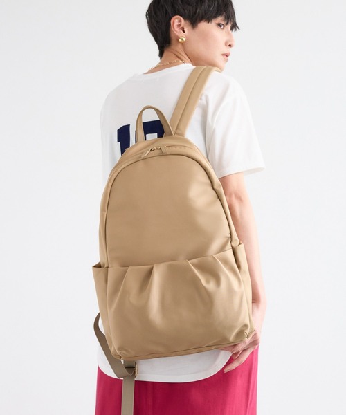 ポケットがアクセントの上品さが目を惹くリュック・正面ポケットのギャザーが女性らしいポイント・シンプルですっきりとしたデザインで、通勤リュックにもおすすめ・カジュアル過ぎないデザインでオフィススタイルとの合わせも◎・ポケットが13個あるので細かいものも使いやすく収納しやすい・500mlペットボトル(横向き・縦向き):〇・長財布(10×20cm):〇・ノートパソコン(13インチ相当):〇【原産国】中国お買い物をお得にもっと楽しく!上手な活用方法>>>▼商品のお気に入り登録▼完売カラーの再入荷通知や、ラスト1点の通知、プライスダウンしたセール通知も受け取ることができます。▼ブランドのお気に入り登録▼新作や再入荷等、いち早くブランドのお得な情報を受け取ることができます。【ご注意】※屋外の光や照明の当たり具合で、実際の商品の色味とカラー別画像の色味に若干の違いが発生する場合がございます。詳細画像と併せてご確認の上、ご注文いただきますようお願い致します。※サンプルにて撮影をしておりますので、実際の商品とは色味・仕様や加工・サイズ等が若干異なる場合がございます。予めご了承くださいませ。