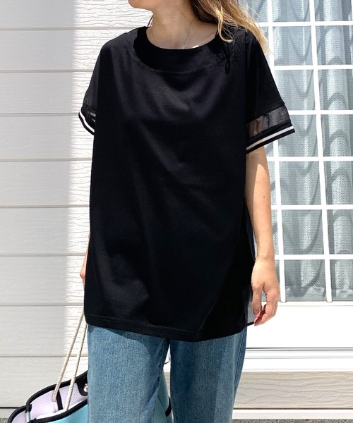【WEB限定アイテム】袖のシアー切替がさりげないポイントのトップスです。カジュアルになりがちなTシャツの増える夏に嬉しい、ブラウス見えカットソー。シルケット見えのカットソーはレーヨン混で落ち感があり、ブラウスのような印象です。レーヨン混合のため、夏でも涼しく快適に過ごすことができます。ご自宅でお洗濯が可能なのも嬉しいポイント◎ほど良い長さの袖丈で二の腕カバーも叶います。カーデを羽織らず1枚で着たいトップスです。《インフォメーション》◆商品のお気に入り登録完売していても再入荷時に再入荷通知を受け取ることができますので、是非ご登録ください。◆ブランドのお気に入り登録新商品や再入荷などの情報を受け取ることができますので、是非ご登録ください。