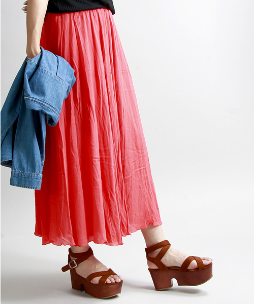 マキシ丈で仕上げたスカート。肌触りよく滑らかな質感の生地で、ストンとした綺麗な落ち感とドレープが着こなしに女性らしい雰囲気を演出してくれます。ウエストはゴム仕様なので、リラックスして快適に着用頂けるひと品。今季はショート丈トップスと合わせたり、ハットやサンダルと合わせるような着こなしもオススメです。 WEGOの特集ページはコチラ