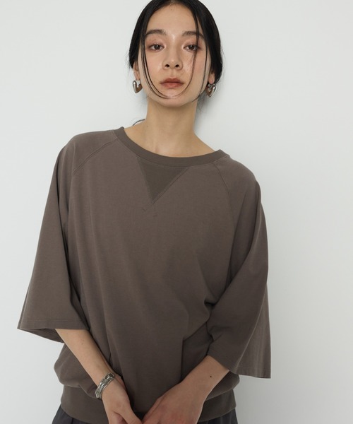 《デザイン》トレーナーのように仕立てたバックプリントです。ゆったりとしたシルエットで身体のラインをカバーでき、前後2WAYで着られます。裾リブを上げ、ブラウジングを出したり抜け感を出す着こなしができます。ライトグレーにはチャコールブラウン、グレイッシュブラウンにはチャコールグレーの配色プリントです。一枚で存在感のあるTシャツです。《素材》強撚糸を引き揃えツイル目に編むことで立体感とシャリ感のある天竺です。ヴィンテージな風合いと、ナチュラル感のある表情がポイントです。糸の撚り方向が編み機の回転と対になることで斜行が軽減されています。《機能・特長》前後2WAY#COMMECAWardrobe #コムサワードローブ