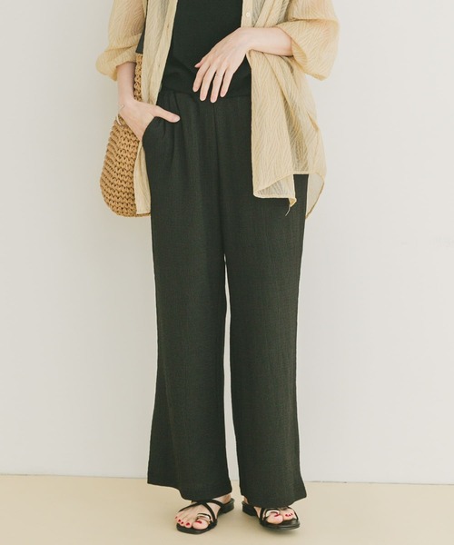 カット楊柳素材のイージーパンツは、涼しく軽やかな履き心地が魅力。柔らかな生地感と、ウエストゴム仕様でリラックス感のある着心地です。普段使いはもちろん、ちょっとしたお出かけにもぴったり。楽ちんなのにおしゃれに決まり、合わせるアイテム次第でカジュアルにもきれいめにも着こなせる万能アイテムです。【2025 Spring/Summer】【25SS】※この商品の(バック)ポケットはフェイクです。予めご了承ください。※商品画像は、光の当たり具合やパソコンなどの閲覧環境により、実際の色味と異なって見える場合がございます。予めご了承ください。※商品の色味の目安は、商品単体の画像をご参照ください。▼お気に入り登録のおすすめ▼お気に入り登録商品は、マイページにて現在の価格情報や在庫状況の確認が可能です。お買い物リストの管理に是非ご利用下さい。素材感透け感 : なし伸縮性 : ややあり裏地 : なし光沢 : なしポケット : ありFREE