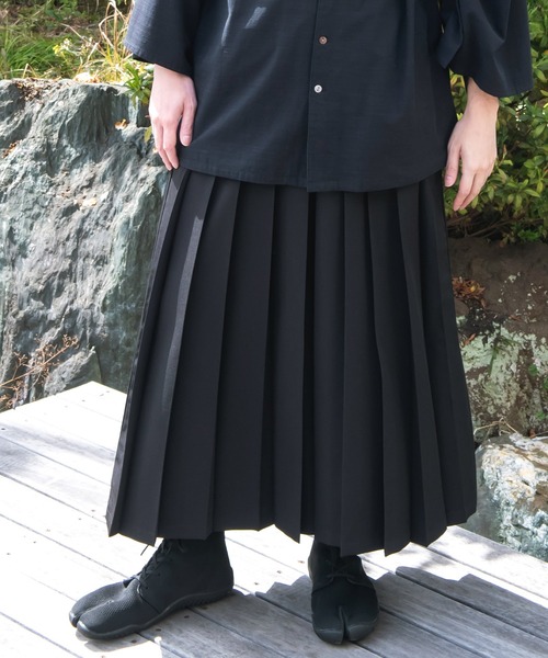 大正ロマンの雰囲気漂う、袴風ワイドパンツ。プリーツ加工で綺麗な和装のシルエットを表現。夜の風景をイメージした上品な色合い。和装を格上げしてくれる一枚です。・両サイドポケット付き。・ウエストベルトループ付き。・ウエストのベルトは取り外しも可能です。●スミクロ:墨(すみ)●ベージュ:潤色(うるみいろ)●ネイビー:紺(こん)◆カヤ◆古くから伝わる日本の伝統と新しい文化の融合。「新しいカタチの日本」に出会える倭物ブランド【カヤ】「文明開化」をテーマに、倭モダンで色彩あふれる刺激的な和雑貨を提案していきます。※こちらの商品は1点1点職人による手作りとなります。その為、形や色合いなど若干異なる場合がございます。あらかじめご了承ください。※屋外での撮影画像は、光の当たり具合で色味・カラーが違って見える場合がございます。商品のカラーは、スタジオ撮影の画像をご参照ください。Amina Collection Co.,LTD.