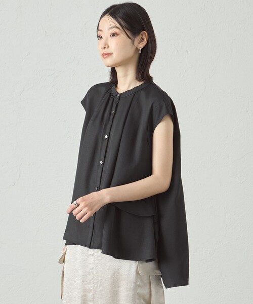 【CAST:キャストコロン 2025年春夏アイテム】【Design】アシンメトリーデザインのフレンチスリーブブラウス。左側はレイヤードディテール、右側はギャザーになっていて、細やかなデザインのこだわりが光ります。身頃はフレアシルエットになっているので、体離れも良く、涼しく着用して頂けます。【Fabric】特殊な加工によりシルクのような仕上がりで、軽さや膨らみ、光沢が特徴的な素材です。吸水速乾・UV対策の機能付き。さらっとした着心地で、暑い時期にも快適に過ごせます。【Styling】華やかさときちんと感のあるトップスなので、オンオフで活躍します。同素材のパンツ(N5R85520)との合わせもおススメです。●洗濯:手洗い可透け感:なし伸縮性:ややあり生地の厚さ:薄いおすすめ着用期間:春、夏※この商品はサンプルでの撮影を行っています。実際の商品とイメージ、サイズ、品質表示、原産国等が異なる場合がございます。※店頭及び屋外での撮影画像は、光の当たり具合で色味が違って見える場合があります。商品の色味は、スタジオ撮影の画像をご参照ください。