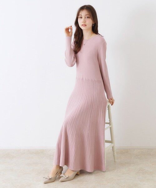 一枚でスタイリングが完成する華やかなデザインワンピース ~POINT~ きれいめに着用していただける素材感なので、普段の通勤やセレモニーシーンにもおすすめです 風合いが柔らかく滑らかな着心地です!たっぷりの落ち感が上品さを醸し出してくれます 肌なじみの良いカラーなので顔周りも明るい印象に◎ 【素材・機能】 毛羽立ちの少ないレーヨン混のやわらかく落ち感のある糸を使用。 上身頃はすっきりとしたリブで、スカート部分には軽やかに見せてくれるアイレットデザインに。 ※ハンドウォッシャブル機能付き 【仕様】 ・ポケットなし ・裏地なし ・本体と同系色のペチコート付き ※照明の関係により、実際よりも色味が違って見える場合があります。また、パソコン・スマートフォンなどの環境により、若干製品と画像のカラーが異なる場合もございます。 【スタッフコメント】 ・saori(153 )落ち感がとてもキレイで美シルエットのワンピースです◎シンプルながら一枚で着映えるアイテムです!春先はマンパなどアウターと合わせると今年の気分に!キレイめ~キレイめカジュアルスタイルまでお楽しみ頂けます! 【25SS NEW ARRIVAL】 【25SS NEW COLLECTION】 モデル情報:身長159cm B75 W56 H81 着用サイズ:38(M) 店舗へのお問い合わせ商品番号:508-52032 ●製品寸法: 36(S):ワンピース着丈113cm ワンピースB76cm ワンピース袖丈49cm ワンピース肩幅33cm ワンピースW71cm ペチコート総丈59cm ペチコートW57cm 38(M):ワンピース着丈115cm ワンピースB80cm ワンピース袖丈50cm ワンピース肩幅34cm ワンピースW75cm ペチコート総丈60cm ペチコートW60cm 42(LL):ワンピース着丈119cm ワンピースB88cm ワンピース袖丈51cm ワンピース肩幅36cm ワンピースW83cm ペチコート総丈63cm ペチコートW66cm 備考: