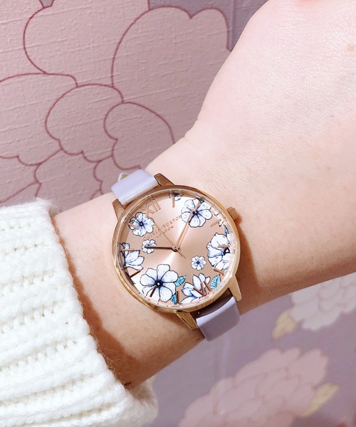 こちらの商品はオリビアバートン日本総代理店正規品です。2年間の代理店保証のため安心してご愛用頂けます。OLIVIA BURTON純正ボックスが付属致しますので、大切な方へのプレゼントにも最適です。※ボックスデザインは予告なく変更になる場合がございます。・SPEC重量:23gケース縦:34mm / ケース横:34mm / ケース厚み:8.1mmバンド幅:12mm /文字盤カラー:ローズゴールド / バンドカラー:パルマバイオレット防水性能:1気圧防水 /ムーブメント:手首回り:15.5~21cmケース素材:ステンレススチールバンド素材:レザー■付属品:オリビアバートン純正BOX、取り扱い説明書、日本総代理店保証書■保証期間:オリビアバートン代理店保証2年(ムーブメント部のみ)<保証について>時計のムーブメント部分についてはお買い上げ日より保証期間※1が設けられております。弊社系列の実店舗にて受付けさせていただく場合にはZOZOTOWN注文履歴に記載のご購入日の証明が必要となりますので大切に保管くださいませ。 また、下記の場合は保証対象外となり実費での受付になりますのでご了承ください。・機械部分以外の破損(ベルトの磨耗・ベルト切れ・傷/へこみなどの外損)・保証書の紛失※1 メーカーにより保証期間が異なります。詳しくは保証書または商品説明文をご確認下さい。OLIVIA BURTON(オリビアバートン)リーザ・ベネットとジェマ・フェニングスの2人が2012年に設立したロンドン発のブランド。2人はロンドン市内のファッション専門学校で出会い、入学初日で意気投合し親友となりました。その後、イギリスの有名高級百貨店” SELFRIDGE” やASOSでバイイング経験を積み、ブランドの設立を決めました。2人はファッション業界での経験を活かし、フェミニン、ヴィンテージ感、トレンドと価格設定にこだわった女性が求めているファッションウォッチをデザインします。ファッショントレンドからコンテンポラリーなエッセンスを加え、シンプルで上品な腕時計に仕上げています。洋服のように腕時計も気分に合わせられるようにコレクションをして、自分だけのオリジナルクローゼットを作れるようにと考えられています。BeyondCool(ビヨンクール)「ファッション」だけにとらわれず、人々の「ライフスタイル」を豊かに、よりカッコよくをコンセプトに1997年に創業。世界中からまだ日本国内では知られていない感度の高いブランドをセレクトし、いち早く発信する。