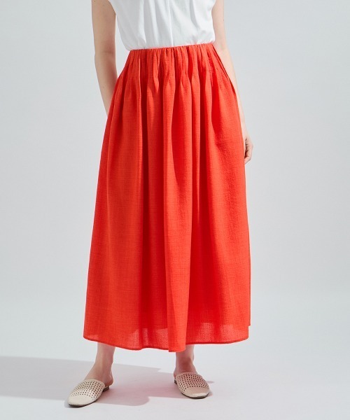 ●POINT フシ感のあるリネン調のテキスタイルを使用したウエストタックデザインのフレアスカートです。 ウエスト内側にゴムを仕込んだプルオンタイプのイージースカート。 多めに入ったタックデザインで縦方向の陰影のおかげでボリューム感がありつつ着ぶくれ見えしないポイントです。 ブラック、ベージュ、ブライトレッドに近いオレンジの3色展開です。 ---------------------------------- 透け感:なし 厚さ: 普通 伸縮性:なし 裏地: ポケット: ---------------------------------- ---------------------------------------------------------------- 洗濯方法 家庭洗濯:液温は30℃を限度とし、洗濯機で非常に弱い洗濯ができる。 自然乾燥:日蔭の吊り干しがよい。 アイロン:底面温度160℃を限度としてアイロン仕上げができる。 ドライクリーニング:石油系溶剤による弱いドライクリーニングができる。 ---------------------------------------------------------------- ■モデル身長 165cm 着用サイズ M ※画像の商品はサンプルとなりますので実際の商品と仕様、加工、サイズが若干異なる場合がございます。 ※お客様のモニター環境により実際のお色と多少異なる場合がございます。 ※撮影状況や光の当たり具合により、色合いが異なって見える場合がございます。 ---------------------------------- ▼商品のお気に入り登録 ハートマークをクリックし、お好きなカラーを選んでお気に入りに登録 完売カラーの再入荷通知や、ラスト1点の通知、セールの通知も受け取ることができます。 ▼ブランドのお気に入り登録 新商品や再入荷等、いち早くブランドのお得な情報を受け取ることができます。 ----------------------------------