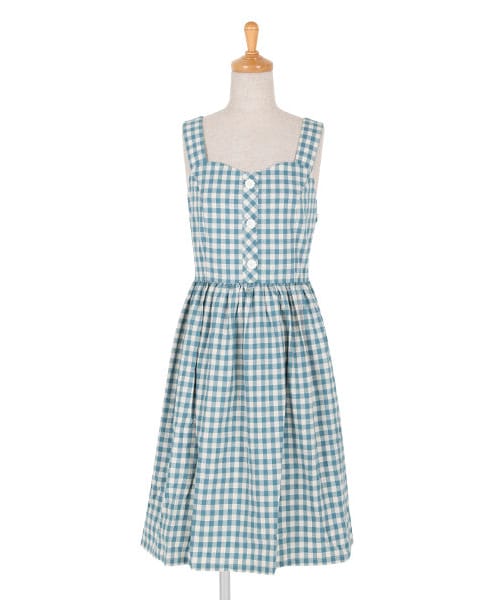 マーガレット型の釦がキャッチーでキュートなワンピース。 ギンガムチェックの柔らかな色味がナチュラル感を演出♪ 中にブラウスやカットソーを合わせたり、カーディガンを羽織ったりと、合わせるアイテム次第で様々な印象になります MATERIAL:cotton65%polyester25%rayon5%polyester5% polyester100%(裏地) made in China サイズ:フリー 着丈93.5cm 胸囲94〜80cm 肩幅31cm ウエスト85〜71cm