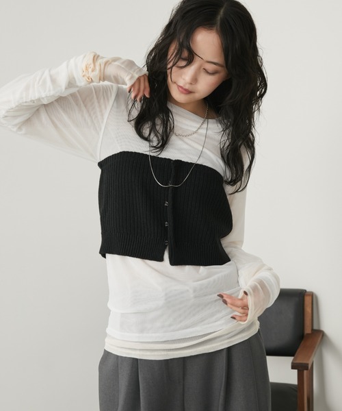 AUNT MARIE'S大人気のホックニットビスチェから コンパクトなサイジングが登場! ■デザイン レイヤードスタイルに映える、ミックスニットを使用したビスチェ。 通気性の良い軽やかなニット素材で仕立てており、 肌に優しくなじむ着心地が魅力。 ロングシーズン着用可能です。 コンパクトなシルエットながら程よい伸縮性で 窮屈さを感じさせず、すっきりとした印象に◎ ミックスの編地がカジュアルすぎない上品な風合いで 大人のスタイリングにも自然に溶け込みます。 スタイリング次第でカジュアルにもフェミニンにも 着こなせる万能レイヤードアイテムです! フックは自由に開閉できるのでお好みで楽しめます。 ■素材感 通気性がよく、軽やかでさらっとした素材感。 伸縮性とフロントフックで離脱着しやすいです。 ご自宅で手洗い可能なのも嬉しいポイント。 ■スタイリング Tシャツやシャツに重ねるだけで、 シンプルコーディネートが一気に今年らしいコーデに仕上がります。 オーバーサイズなシャツにすっきりとしたパンツを合わせる メリハリを出すのもトレンド感あるおすすめスタイリングです! ------------------------ 透け感/なし 光沢感/なし 伸縮性/あり 裏 地/なし 厚 み/普通 ------------------------ ※手洗い可能 ※着用中摩擦で他の物に色が移る可能性がございますのでご注意ください。 ※詳しいお手入れ方法は商品タグをご参照ください。 【SNS掲載情報】 @auntmaries.official 公式Instagramアカウントにて新作情報をはじめ 多彩なコンテンツを掲載しております。ぜひご覧くださいませ。 【商品のお気に入り登録】 完売カラーの再入荷通知やラスト1点の通知 プライスダウンの通知も受け取ることができます。 ぜひご登録ください◎ 【ブランドのお気に入り登録】 新商品や再入荷など、 ブランドの情報をいち早くお知らせします! ぜひご登録ください◎ ※ご注意※ ・屋外の光や照明の当たり具合で、実際の商品の色味と カラー別画像の色味に若干の違いが発生する場合がございます。 ・詳細画像と併せてご確認の上、ご注文いただきますようお願い致します。