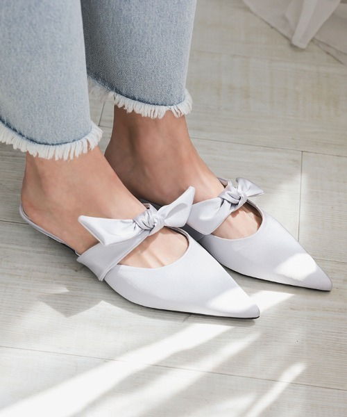 サテンリボンミュール■商品説明さっと履けて抜け感たっぷりなミュールサンダルは、サテンリボンをポイントに甘すぎない印象に。エッジの効いたエレガントなポインテッドトゥが足元を引き締めてくれ、フラットでも足を長く綺麗に見せてくれてます。フレアスカートと合わせてレディライクに。ミニボトムスにシアーソックスをプラスしたガーリーコーデや、デニムと合わせてカジュアルなコーディネートもオススメです。★STAFFが試着しました★【STAFF M】買うなら36(23.0cm)・足のサイズ:22.5-23.0cm・甲高/幅普通素足着用で36(23.0cm)が少し余裕がある感じでした。靴下合わせでも、全くキツくないです。甲部分にリボンのストラップがあるので、脱げにくくカパカパしにくいです。【STAFF R】買うなら38(24.0cm)・足のサイズ:23.5-24.0cm・甲普通/幅普通38(24.0cm)を素足で履いたところ横幅も縦もピッタリサイズでした。サッと履けて、足の甲のフィット感も抜群で歩きやすいです。【STAFF O】買うなら40(25.0cm)・足のサイズ:24.5-25.0cm・甲高・幅広サッと履けて、カカトが飛び出ることなく綺麗におさまりました。甲部分に当たるサテン生地も柔らかく、インソールもふかふかなのでデイリー使いしやすいです。■サイズ(cm)36(23.0cm)足幅(靴底) 約7.5、ワイズ 約1338(24.0cm)足幅(靴底) 約7.5、ワイズ 約1340(25.0cm)足幅(靴底) 約8、ワイズ 約13.5ヒール 約2.5、ストーム 約0.4[重量]片足 約182g (38/24cm)※平置き採寸のため若干のブレがございます。~*~*~*~*~*~*~*~*~*~*~*~*~*~*▼ 商品のお気に入り登録 ▼完売カラーの再入荷通知や、ラスト1点の通知、セールの通知も受け取ることができます。ぜひご登録ください♪▼ ブランドのお気に入り登録 ▼新商品や再入荷など、ブランドのお得な情報をいち早くお知らせ!ぜひご登録ください♪