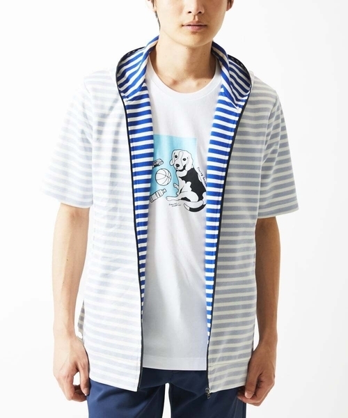 ≪素材≫ ・吸水性や通気性の優れたコットン、肌触り良いナイロン素材と、着脱時にフィット感のあるポリウレタン素材が配合されております。 ・ホワイト×ブルーと、ホワイト×ネイビーの春から夏の印象のボーダー配色デザインです。 ≪デザイン≫ ・アウターとしてもトップスとしてもご利用いただける便利なフルジップです。 ・MKオム定番の細身のシルエットです ・表は無地見え、アクセントとして裏をボーダー見え仕様にしています。 ≪生地感≫ ・透け感⇒あり ・生地厚⇒ふつう ・伸縮性⇒あり