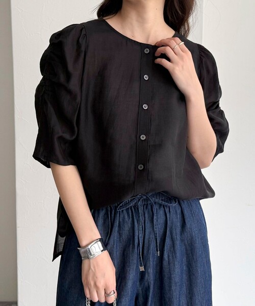 ◇fredy emue◇ 【2025 SS】 爽やかな着こなしが叶うシアー袖ボリュームブラウス ●point ・袖のギャザーがポイントのふんわり女性らしいブラウスです ・シアーですが透けすぎないので上品な雰囲気で着用していただけます ・薄手の素材感で夏でも涼しく快適な着心地◎ ・前後着用できる2way仕様で気分に合わせて雰囲気を変えて着用していただけます ・デニムなどカジュアルなパンツとの相性も◎ ・キレイ目にも使えるのでお仕事時にもオススメです 透け感:あり 裏地:なし 伸縮性:なし 光沢感:なし 洗濯:手洗い可 ●お取扱い上のご注意● *商品を長くご愛用していただきたいため、アテンションタグがある場合は必ずご確認の上、着用又はお取り扱い下さい。 *画像の商品はサンプルとなりますので実際の商品と仕様(主にファスナー・釦等の付属品)、加工、サイズが若干異なる場合がございます。 *店頭及び屋外での撮影画像は、光の当たり具合で色味が違って見える場合があります。商品の色味は、スタジオ撮影の画像をご参照下さい。 *商品画像に関しては出来る限り忠実に表示出来るよう努めておりますが、お客様がご利用のモニターの設定及び特性により、実際の商品と比較し色味に若干の誤差が生じる場合があります。 *製品洗い加工の商品は、多少の歪み、シワなどが見られたり、風合いやサイズ等が1枚1枚異なります。汗や雨等で濡れた時や、摩擦により色落ちし、他の衣料を汚すことがありますので(特に濃色のもの)ご注意ください。 ※サンプルでの採寸のため、サイズ表はあくまで目安となります。予めご了承ください。 ◇商品のお気に入り登録◇ 【お気に入りに登録 ♡マークをクリック】を是非ご活用ください! 再入荷の通知や、ラスト1点の通知、セールの通知がいち早く届きます。 ◇ブランドのお気に入り登録◇ 新商品や再入荷など、いち早くブランドのお得情報が届きます。