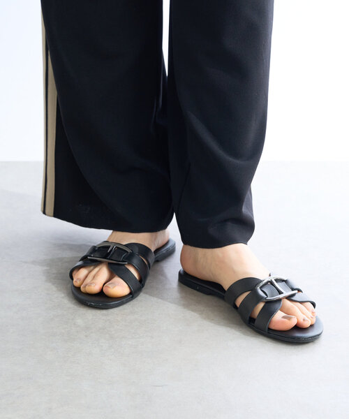 メタルのバックルがアクセントになるフラットサンダル商品ポイント・メタルと牛革が上品なフラットサンダル。・足の甲を包み込むようなデザインで脱げにくく歩きやすいです。・ほどよい肌見せが春夏のコーデに抜け感をプラスできます。おすすめコーディネート綿素材のワンピースやデニムコーデでラフに合わせるのも◎フラットでシンプルなデザインなので合わせやすく大人カジュアルな雰囲気で着られます!おすすめスタイリングアイテム《履くだけスタイリッシュ・ウエストゴム》ストレートフレアデニムリネンタッチイージーパンツビンテージサテンスカート《オールシーズン履ける》ストレッチデニムスカート素材牛革《Q&A》Q1:サンダルは脱げやすくないですか?足の甲の部分はしっかりとしたホールド感があり、脱げにくくなっていますので歩きやすいです。Q2:歩いた時に滑りやすくないですか?底は滑りにくいゴム底となっているので安心して履いていただけます。Q3:合わせるボトムスの長さはどれくらいが良いですか?様々な丈のボトムスに合わせていただけます。くるぶしあたりの長さのロングスカートであれば歩くたびにのぞくサンダルがアクセントになります。さらに足首を見せる長さのボトムスと合わせると抜け感が出せます。【スタッフ着用コメント】《まっしー》身長:157cm/着用サイズ:F体型:普通/骨格:ナチュラル/パーソナルカラー :イエベ秋骨格タイプストレート:全体的に立体型で筋肉質。ひざ下はすらっと細め。ボディラインにメリハリがある。ウェーブ:上半身が薄く、華奢。緩やかな曲線のボディライン。下半身に重心があり女性らしい体型。ナチュラル:筋肉や脂肪があまり感じられない体型。腰の位置が高く骨や関節が目立ちやすい。--------------------------------------------------------------------------------【注意点】※画像の商品は光の照射や角度、お使いのモニター環境により、実物と色味が異なる場合がございます。※入荷状況により、お届け予定が前後する場合があります。※工場の生産の都合上、納期が変更になる場合がございます。検品や輸送の関係で、発送日が前後しますのでご了承ください。 また、入荷状況により、お客様への発送が店頭販売より遅れる場合もございます。※追加生産商品は、一部の店舗、通販で販売中の場合がございます。予めご了承下さい。※サンプルでの撮影、計測をしております。商品の仕様が一部変更になる場合がございます。※撮影サンプル品はブランドタグがついておりません。製品にはタグがつきますので、製品の表に縫い糸が見える場合がございます。--------------------------------------------------------------------------------【お買い物をもっと便利に楽しく♪】『ハート』をクリックでお気に入り登録〇「商品のお気に入り登録」で・・・ ラスト1点や再入荷の通知が届きます。登録して頂いた商品だけが対象となる、あなただけのタイムセールが開催されることも!〇「ブランドのお気に入り登録」で・・・ 新商品や再入荷など、いち早くブランドのお得な情報を受け取ることができますので、ご登録をおすすめします!--------------------------------------------------------------------------------