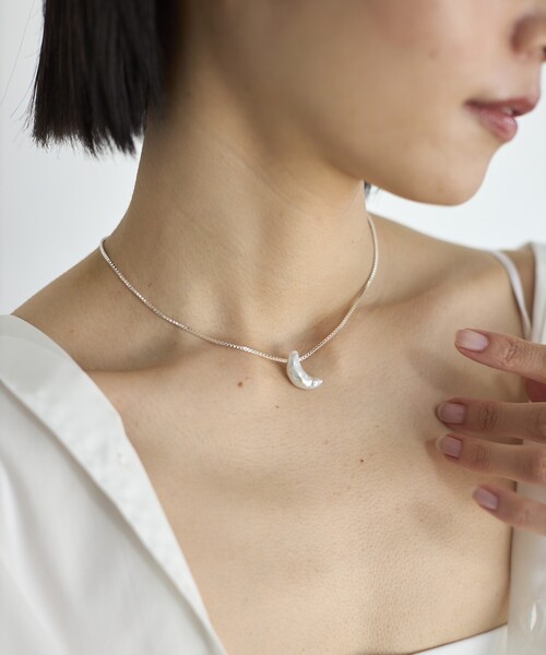 2025 Spring & Summer item月の形をしたバロックパールを使用した、幻想的で美しい チェーンネックレス●チェーン部分はシンプルでありながら、上質な輝きを放つデザイン●デイリー使いにも特別な日にもぴったりのアイテム●そのユニークな形状と上品な光沢が、顔まわりを華やかに彩り、シンプルなコーディネートにもアクセントを加えます※調節可能チェーン部分:5cm※掲載画像の商品の色味は、屋外や屋内の光の照射や角度により実物と色味が異なる場合がございます。また表示のサイズ感と実物は若干異なる場合もございますので、予めご了承ください。※着用、お取り扱いの際は、商品についている品質表示とアテンションタグを必ずご確認下さい。【Firsthand / ファーストハンド】Fashion , Sustainable , Art をテーマに、デザイン性やクォリティー、モノ作りなど、クリエイティブを重視したサステナブルなコンセプトストア。 ここでしか出会えないブランドやアイテム、ここでしかできない実体験、新しくスタイリッシュなカルチャーとファッションをここから発信していきます。フリークスストア等を構えるデイトナインターナショナルから新たに発信されるブランドです。
