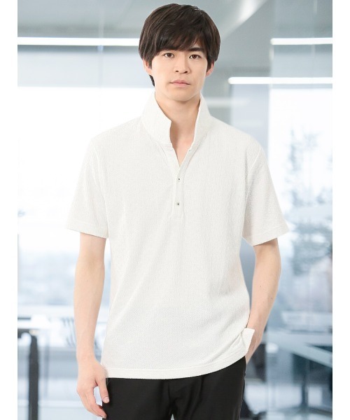 ■素材特徴 ポリエステル・コットンのカットソー素材です。特殊なジャガード編み機による表目と裏目を組み合わせたリンクス編みで、奥行きのある幾何額柄を表現しています。 ■機能 【マシンウォッシャブル】洗濯機で洗えます。(要ネット・標準水流) ■デザイン イタリアンカラーの半袖ポロシャツです。立ち衿で着ると大人っぽい雰囲気を演出できます。裾部分に入れたスリットが着用時のウエストのしわを軽減させます。 ■シルエット 身体のラインに沿ったやや細身のシルエットでスッキリと着ていただけます。 ■コーディネート スマートなパンツと合わせて綺麗目に、デニムやカーゴパンツと合わせてカジュアルに、ショートパンツと合わせてスポーティーに。ラフ過ぎず綺麗見えするルックスなので、プライベートからオフィスカジュアルまでオンオフ兼用で活躍してくれます。 フィット感:やや細身 シーズン:夏 展開カラー:白(ホワイト)・シロ×クロ・紺(ネイビー) *アテンションタグ・洗濯ネームを御確認の上、着用又は取り扱い下さい。 *光の当たる場所や高温多湿になる場所での保管は避けて下さい。 *使用の有無に関わらず、経年劣化は進行いたしますのでご了承下さい。 *生地の裁断・縫製方法により、写真と同様の柄が出ない場合がございます。 *閲覧デバイス・環境により質感・色味に誤差が生じる場合がございます。 * ZOZOTOWN お買い物ガイド 商品のお気に入り登録 ♡をクリックしましょう!完売カラーの再入荷通知や、ラスト1点の通知、セールの通知をお知らせします。 ブランドのお気に入り登録 新商品や再入荷など、いち早くお得な情報を受け取ることができます。 最短で翌日お届け 商品をカートに入れた後、注文内容の確認ページで「即日配送」を選択していただければ、最短でご注文した翌日にお届け致します。 (ZOZOTOWNお買いものガイドをご参照ください)