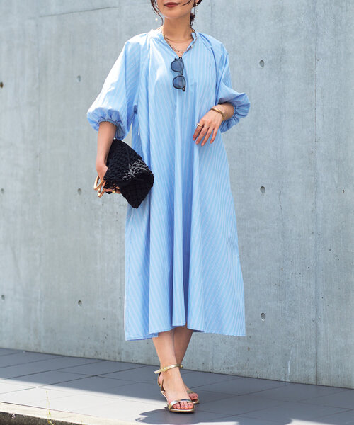 涼しげな大人のスキッパーワンピース 商品ポイント ・デコルテラインをヘルシーにみせて抜け感をプラスしてくれるスキッパーデザイン。 ・涼しげに着こなせるストライプ柄でブラック・ブルー・キャメルの三色展開となっています。 ・ボリューミーなスリーブデザインもアクセントになっており、一枚で着映えするワンピースです◎ おすすめコーディネート 一枚ではもちろん、デニムやワイドパンツとレイヤードしたスタイルもおすすめ◎ フラットなサンダルやスニーカー、ヒールなど小物次第でも印象の変わる着こなしを楽しめます。 おすすめスタイリングアイテム 《美シルエットが叶う・3サイズ》リラックスセミワイドデニム 《デイリーに着回せる!》カーブチノパンツ バレルデニム 【EVOL(イーボル)】ポインテッドストラップサンダル 素材 ポリエステル48% 綿38% レーヨン14% 洗濯方法:手洗い可 透け感:なし 裏地:なし 伸縮性:なし 生地の厚さ:普通 光沢:なし ポケット:あり 《Q&A》 Q1:丈感はどれぐらいですか? 身長160センチ前後のスタッフが着用して、足首よりやや上の丈感になっています。 Q2:普段Lサイズを着るのですが、サイズ感が気になります。 全体的にゆったりめのシルエットに仕上げられておりますので、普段Lサイズの方でも着用いただけます。 Q3:季節的にはいつごろまで着用できますか? デニムパンツを合わせたり、シアーカットソーやタートルネックとのレイヤードにすると、5分袖程度ですので秋口までお楽しみいただけるかと思います。 【スタッフ着用コメント】 《なの》 身長:162cm/着用サイズ:F 体型:普通/骨格:ウェーブ/パーソナルカラー :イエベ春 ふっくらとしたスリーブがアクセントになって、この1着で大人可愛いムードに◎ スキッパーなので、ネックレスなやアクセサリーのお洒落も楽しめるのが魅力です。 骨格タイプ 骨格ストレート:全体的に立体型で筋肉質。ひざ下はすらっと細め。ボディラインにメリハリがある。 骨格ウェーブ:上半身が薄く、華奢。緩やかな曲線のボディライン。下半身に重心があり女性らしい体型。 骨格ナチュラル:筋肉や脂肪があまり感じられない体型。腰の位置が高く骨や関節が目立ちやすい。 -------------------------------------------------------------------------------- 【注意点】 ※画像の商品は光の照射や角度、お使いのモニター環境により、実物と色味が異なる場合がございます。 ※入荷状況により、お届け予定が前後する場合があります。 ※工場の生産の都合上、納期が変更になる場合がございます。検品や輸送の関係で、発送日が前後しますのでご了承ください。 また、入荷状況により、お客様への発送が店頭販売より遅れる場合もございます。 ※追加生産商品は、一部の店舗、通販で販売中の場合がございます。予めご了承下さい。 ※サンプルでの撮影、計測をしております。商品の仕様が一部変更になる場合がございます。 ※撮影サンプル品はブランドタグがついておりません。製品にはタグがつきますので、製品の表に縫い糸が見える場合がございます。 -------------------------------------------------------------------------------- 【お買い物をもっと便利に楽しく♪】 『ハート』をクリックでお気に入り登録 〇「商品のお気に入り登録」で・・・ ラスト1点や再入荷の通知が届きます。 登録して頂いた商品だけが対象となる、あなただけのタイムセールが開催されることも! 〇「ブランドのお気に入り登録」で・・・ 新商品や再入荷など、 いち早くブランドのお得な情報を受け取ることができますので、ご登録をおすすめします! --------------------------------------------------------------------------------