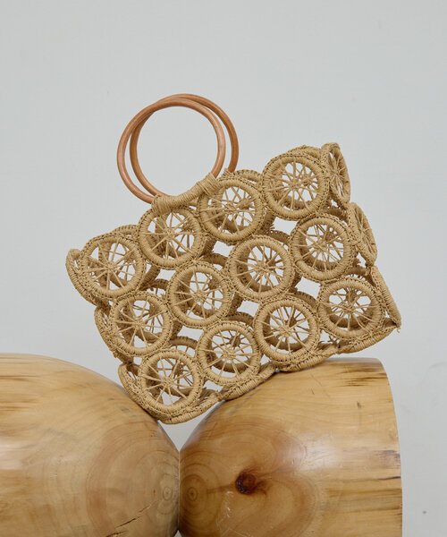 シンプルスタイルに映える、遊び心のあるデザインバッグ●シーズン感のあるデザインが魅力のハンドバッグ。●マチがしっかりとあり、収納力抜群。●ナチュラルなハンドルもアクセントに。●編み目を活かして、お手持ちのポーチでアレンジを楽しめます。※手編みの製品のため、サイズスペックは多少異なる可能性があります。※画像の商品はサンプルです。実際の商品と仕様、加工などが若干異なる場合があります。また、生産過程上の都合により、洗濯表記や混率、サイズスペック等が多少変更になる可能性がございます。予めご了承ください。※トップの画像は、光の具合で色味が違って見える場合があります。◆気になる商品は「お気に入り」登録を◆ハートマークをクリックし、お好きなカラーを選んでお気に入りに登録すると入荷情報や残り1点の通知、完売カラーの再入荷、セール情報などを受け取ることができます。