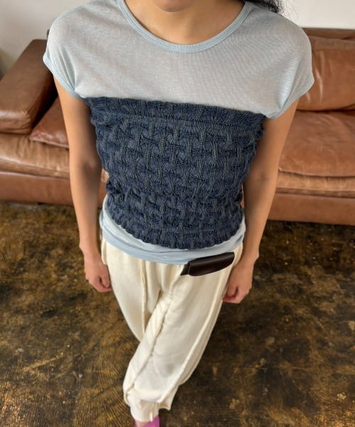 〈 FUULLY STUDIO 25SS COLLECTION 〉 〈 Design Point 〉 一枚は持っていたいレイヤードアイテムのデニムビスチェ。 シャーリングのデザインを施すことで デニムのカジュアルな雰囲気に愛らしいフェミニンさを+。 FUULLYにしかない特別なビスチェに仕上げました。 表面豊かな生地でシンプルになりがちな夏のスタイリングを華やかにしてくれます。 ※お取り扱いのご注意(インディゴ製品) この商品はインディゴ染めです。他の製品には味わえない自然な風合いがあり 洗っていくごとに独特に色落ちに変化を楽しめます。 取り扱いの際は次の点に十分にご注意し、着用くださいませ。 ・濡れたままの放置は避けて下さい。 ・染料が色落ちしますので他のものと絶対に一緒に洗わないでください。 ・雨や汗などの湿った状態、着用や保管時の摩擦によって他の衣類や下着、かばん、椅子などに色移りをすることがございます。 十分にお気をつけて着用ください。 ・長時間、直射日光が当たる場所に置かないでください。 〈 Styling 〉 薄手のシアーの半袖に合わせるスタイリングから アメスリなどのカジュアルなインナーを合わせたヘルシーな着こなしもおすすめです。 ※色落ちする場合がございますのでなるべく暗めのアイテムを合わせることを推奨しております。 〈 Size 〉 FREE サイズ 全体にシャーリングを施しておりますので伸縮性に優れ、 着用時はストレスなく着用できます。 〈 Detail 〉 コットン65%,ポリエステル35% 透け感:なし 伸縮性:あり 裏地:なし ケア方法:単独のみでのお洗濯をお願い致します。 ネットに入れてドライ(おしゃれ着洗い)にてお洗濯ください。 ※お取り扱いのご注意(インディゴ製品) この商品はインディゴ染めです。他の製品には味わえない自然な風合いがあり 洗っていくごとに独特に色落ちに変化を楽しめます。 取り扱いの際は次の点に十分にご注意し、着用くださいませ。 ・濡れたままの放置は避けて下さい。 ・染料が色落ちしますので他のものと絶対に一緒に洗わないでください。 ・雨や汗などの湿った状態、着用や保管時の摩擦によって他の医療や下着、かばん、椅子などに 色移りをすることがございます。 ・長時間、直射日光が当たる場所に置かないでください。 〈 FUULLY STUDIO 〉 -フーリィースタジオ- 「そぎ落としたクラシックをベースにフェミニンさとユーモアさの遊び心あるアクセントを加えた洋服で、 あなたを満たす一枚」をテーマに、キュートで愛おしさを表現する柄やカラー、シルエットを落とし込んだ洋服を提案するレディースブランド。 クラシカルでベーシックなアイテムとフェミニンなアイテムを融合させたスタイリングで、凛とした女性の中の愛おしさを表現しています。 〈 公式Instagram 〉 @FUULLY_STUDIO 新作アイテムの情報やおすすめ商品を随時UPしております。 是非チェックしてみて下さい。 ---------------------------------------------------- 〈 お買い物をよりお楽しみいただく為に 〉 ・商品のお気に入り登録 ♡をクリックして気になるアイテムをお気に入りに登録していただくと 完売カラーの再入荷や、ラスト1点の通知、セールの際の通知を受ける事ができます。 ブランドのお気に入り登録もご一緒にお願い致します。