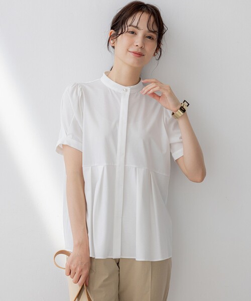バックデザインまで抜かりない着心地抜群ブラウス見えカットソー ■デザイン ・高めの切り替えからのタックが身体から適度に離れるので着心地も抜群。 ・5分丈の袖はカフス切り替から重ねタックのボリューム感がレディな印象に。 ・首元のパール釦がデザインポイント。 ■素材 ・布帛素材のような見え感を目指したジャージ素材。 ・表面の凹凸感少なく細番手の糸を高密度、ハイゲージで編みたてたきれいめでハリのある素材。 ・表面はコットンで天然素材の爽やかな風合い。 ・裏側はポリエステル糸をしようしたツルサラとした肌ざわり。 ・肌離れもよく、夏のお出かけにもピッタリの素材。 ■機能 ・接触冷感 【スタッフコメント】 ▼身長158㎝|着用サイズ2 (通常着用サイズM) イージーケアが嬉しいキレイ見えカットソー。 5分丈の袖が気になる二の腕も隠してくれつい手にっとてしまうアイテムです。 オンオフ問わず着用できるのもおすすめポイントです! ============================ 洗濯方法:マシンウォッシャブル 裏地:なし 伸縮性:あり 透け感:あり ============================ 【注意事項】 ※撮影時の照明の関係により、色味が若干異なって見える場合がございます。商品の色味はハンガー吊り画像をご参照ください。 ※画像はサンプルを使用しているため、実際にお届けする商品と色味やサイズ等の仕様に変更がある場合がございます。 ▼気になるアイテムは『お気に入り登録』がおすすめ▼ お好きなカラー&サイズを選んで?マークをクリック! 再入荷通知や、ラスト1点の通知、セールの通知も受け取ることができます。 洗濯表示 【本体のみ】40℃まで弱洗濯可 塩素系漂白不可 タンブル乾燥不可 日陰つり干し乾燥 アイロンは160℃まで ドライクリーニング(石油系)可 弱いウェットクリーニング可