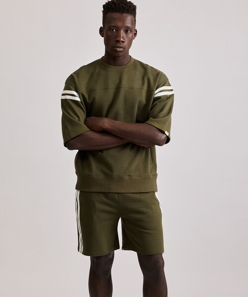 【Design】クラシックなバーシティスウェットから着想を得た、リブ切替が特徴的な裏毛スウェット生地のTシャツです。ゆったりとしたリラックスシルエットです。コットン100%裏毛の厚みのある生地です。【Point】リブ切替がクラシックなデザインのスウェットTシャツ。【Material】程よい厚みのコットン裏毛スウェット生地。【Composition】組成:コットン 100%【Country of origin】原産国:MADE IN CHINA【Size Specs】S/ 着丈 68 | 肩幅 53 | 身幅 58 | そで丈 28M/ 着丈 70 | 肩幅 55 | 身幅 60 | そで丈 29L/ 着丈 72 | 肩幅 56 | 身幅 62 | そで丈 30XL/ 着丈 74 | 肩幅 58 | 身幅 64 | そで丈 31【モデル情報】ダークグリーン:身長 182cm 着用サイズ L sizeブラック:身長 186cm 着用サイズ L sizeワイン:身長 186cm 着用サイズ L size※画像の商品はサンプルとなります。 ※実際の商品と色味、仕様、加工、サイズ、素材等が若干異なる場合がございます。Item Code:BBM25230