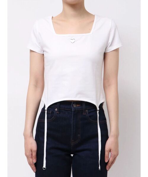 トレンド感のあるガーターデザインがポイント■デザインフロントにはオリジナルのハートのロゴプレートを付けアクセントにしています。カーブ状の裾は、ハイウエストボトムを合わせた時にスタイルが良く見えるバランスになるようなカッティングにしています。伸縮性のあるカットソー生地で着心地もよく、自然に身体にフィットするサイズ感になります。■スタイリングサイドオープンルーズジーンズのようなデザインデニムと合わせて頂くとより今季らしい印象になります。カットリボンブリーチスウェットパンツのようなカジュアルアイテムとのバランスがイチオシです。※着用画像はフラッシュの加減で実際の製品と色味等が異なる場合がございますので、生地のズームアップ画像をご確認ください。※ご利用の端末画面の設定により実際の商品と色味が異なる場合がございます。【商品特徴】透け感:なし伸縮性:あり生地の厚さ:普通サイズ感:普通裏地:なしポケット:なし