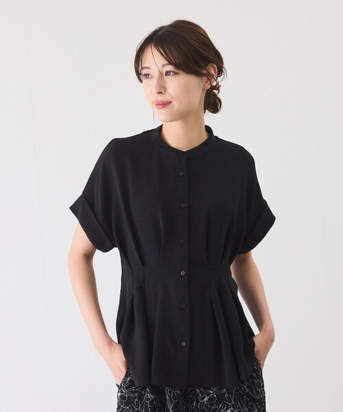【デザイン・シルエット】ウエスト切り替えのため、シルエットはメリハリがある印象に顔周りをすっきりと見せるバンドカラー。◎嬉しい機能付き●接触冷感 ⇒気温が高く暑い時期に最適●UVカット ⇒気になる紫外線からお肌をカバーストレッチも効いているので動きやすく、着心地良く着用いただけます。【素材感】さらりとした肌触りの素材【カラー】01クロ 11シロ 33グリーン【スタイリングポイント】綺麗めなスラックスはもちろん、カジュアルなデニムとも好相性。普段着からお仕事着としても最適で、一枚あると着回し力抜群のアイテムです。裏地:なし光沢感:なし透け感:ありポケット:なし伸縮性:あり生地の厚さ:普通ボタン:ありその他仕様:UVカット 接触冷感季節:春夏※撮影時の光、お使いのモニター環境によって色の見え方が違う場合がございます。予めご了承ください。モデル身長:168cm 着用サイズ:F