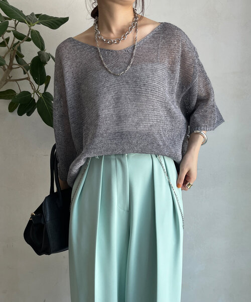 ■2025 SPRING & SUMMER ITEM■ 前後2wayで着られる! 快適さ抜群の涼しいサマーニット ゴワつかず、シャリ感のある素材で軽い着心地のサマーニット。 程よく開いたネックラインは、カットラインの違う前後2wayに仕上げることで着こなしに変化をつけていただけます。 カラーの異なる糸を織り合わせたメランジニットで、表情感のある印象に。スタイリングのポイントとなってくれます。 肘も隠れる安心な袖丈と、ゆるっとルーズに着られるシルエットで、体型カバーしながらも風通しよく快適な1着に。 - POINT - ・程よくあいたネックライン ・メランジのニット素材 ・肘が隠れる5分袖 -------------------------------- 洗濯:手洗い可能 透け感: あり 裏地: なし 伸縮性: あり 光沢感: なし -------------------------------- 【 ♡ をクリックでお得な情報をお知らせいたします 】 〈 商品のお気に入り登録 〉 お気に入りアイテムのお値下げ・再入荷・在庫ラスト1点など通知を受けることができます。 〈 ブランドのお気に入り登録 〉 DOUDOUの新商品や再入荷、セール、クーポン配布などお得な情報を受けることができます。 -------------------------------------- ※ 生産の都合上、お届け時期が前後する場合がございます。 ※ 掲載画像の商品の色味は、 撮影場所や光の当たり具合などにより色味が異なって見える場合がございます。 また、お客様のお使いのPC・スマートフォン等のモニター環境などにより色味が異なって見える場合がございます。予めご了承の上ご注文ください。 ※ 着用、お取り扱いの際は、商品についている品質表示とアテンションタグを必ずご確認下さい。