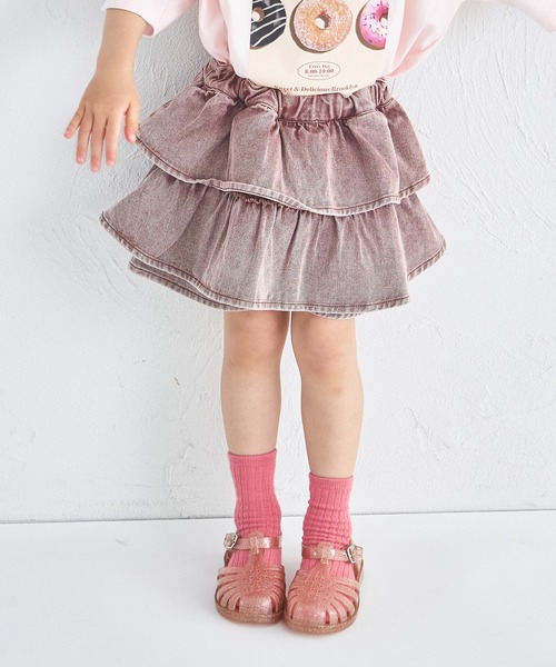 人気のティアードデニムスカッツが、カラー豊富に再登場しました。スカート見えするボリュームたっぷりのティアードデザインが可愛らしいアイテムです。シンプルなトップスと合わせてもバランスが取りやすく、スタイリングしやすい万能アイテム。キュロットタイプなので毎日の通園通学や公園遊びにも安心なデザインです。【スタイリング】ボリューム感のあるティアードデザインとカラーが目を引く主役級アイテムなので、シンプルなトップスを合わせるだけでもばっちりコーデが決まります◎お出かけにはもちろん、毎日の通園や通学でも大活躍の1着です。【ポケット】なし【伸縮性】なし【透け感】透けない【クリーニング】洗濯機洗い可(ネット使用)【裏地】なし【濃色品・色落ち色移り】 濃色品は、色落ち・色移りをする恐れがあります。摩擦(特に湿った状態での摩擦)や汗や雨などで他の衣料や下着(特に白物)に色移りしますので、十分ご注意ください。 モニター・環境等により実際の商品と色味が多少異なって表示される場合がございます。 また、生産時期により色味が若干異なる場合がございます。予めご了承ください。