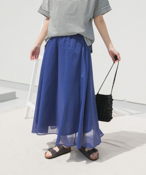 軽く清涼感のあるコットンボイル生地を使用したロングスカートは、ギャザーのたっぷり入ったボリューム感のあるアイテム。 くたっとした風合いのある生地は雰囲気を作ってくれるだけでなく、ライトな着心地を提供。 ギャザーのたっぷり入ったボリュームシルエットですが、しっかりと長さのある丈は大人っぽく、膨らみすぎないため甘さを抑えた印象に。 柔らかい質感の生地に乗せたカラーが手持ちのトップスやシューズに合わせやすく、サンダルやTシャツに合わせると、軽やかで夏のスタイリングを簡単に楽しめます。 裏地付きなので透け感も気になならず、安心して穿いていただけるスカートです。 『UR TECH』 株式会社アーバンリサーチが独自開発して生まれた素材「UR TECH」シリーズ。 「抗菌防臭」「撥水」機能を併せ持った高機能な素材です。 ----------------------------- 《スタッフ着用コメント》 [スタッフM] 年齢 : 20代後半、身長 : 162cm、体系 : 細身・ウェーブ 普段の着用サイズ : M パーソナルカラー : ブルーベース冬 着用カラー : ROYAL、着用サイズ : M 【サイズ感】 161cmでしっかりと足首が見えるくらいの丈感でした。 【素材感,着心地】 さらりとしていてとても涼しいです。ウエストはオールゴムなので締め付けもなく楽ちんでした。 【その他】 裏地が付いているので透ける心配はありませんが、裏地がない裾の方のみ透け感があり涼し気でコーディネートが軽い印象になります。目を惹く鮮やかなカラーは夏に着ると気分が上がりそうです。 ----------------------------- 【2025 Spring/Summer】【25SS】 ※この素材は、はっ水加工をしていますが、水滴などをつけたままにしておくとあとが残ることがあります。 ※この加工は永久的なものではありません。着用を続けていくうちに効果が減少します。 ※商品画像は、光の当たり具合やパソコンなどの閲覧環境により、実際の色味と異なって見える場合がございます。予めご了承ください。 ※商品の色味の目安は、商品単体の画像をご参照ください。 ▼お気に入り登録のおすすめ▼ お気に入り登録商品は、マイページにて現在の価格情報や在庫状況の確認が可能です。 お買い物リストの管理に是非ご利用下さい。 素材感 透け感 M