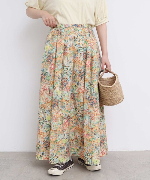 大きな草原。色鮮やかな花が生い茂る夏の風景を描きました。そこにいる人たちは花を摘んでいるのか、かくれんぼをしているのか、みんなそれぞれに楽しんでいます。夏の暑い街から抜け出し、花と草木に触れながらすごす穏やかな時間。草原に迷い込むようなイメージをして細かいけれど勢いのある大きな柄をつくりました。特別な気分になれる総柄スカート。少しざらっとした表面感のあるアムンゼン生地にプリントしました。シンプルになりがちな夏のコーディネートを華やかにしてくれます。ビビットなイメージのピンク、太陽のようなイメージのオレンジ、ぱっと明るい気持ちをくれる夏だからこそ着たい色合いです。カラー展開:ピンク/オレンジ※着用商品はサンプルです。実際の商品と仕様、加工、サイズが若干異なる場合がございます。※光の関係で実物の商品の色味とは若干異なる場合がございます。実際に近い色味は詳細画像をご参照下さい。※取り扱いの注意については取り扱い表示をよくご確認の上、着用をお願いいたします。【素材の特性、お取り扱いの注意】・この製品は、インクジェットプリントを施しております。汗や雨等でぬれた時や強くこすられた場合に色落ちし、他の衣料、小物に移染する事があります。白及び淡色の衣類、バッグ等をご使用されますと、色移りする事がありますのでご注意下さい。洗濯の際は他の物に色がつく場合がありますので単独で洗って下さい。・この製品は独特の風合いを出す為に製品洗いをしています。一枚一枚の色味、風合い、サイズ等も微妙に違いますが、他の製品では味わえない雰囲気をお楽しみ下さい。・素材の組織上、ひっかかり糸切れが起こりやすいので着用着脱時にはご注意ください。・この製品には繊細な素材を使用しているため、強い力が加わると生地が裂けてしまったり、縫い目が滑脱する恐れがありますので、着用時、お洗濯の際は十分にご注意下さい。・この製品を洗濯する際には多少縮む場合がありますので、形を整えてから日陰で干して下さい。l'atelier du savon(アトリエドゥサボン) CONCEPT 1つ1つにかけられた手のぬくもり日々の生活に、少しのデザインを加えた大人の日常着あそび心とあたたかみ