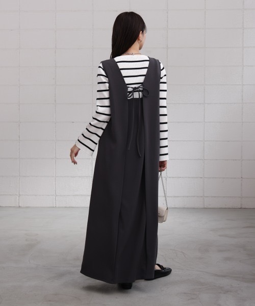 イージーカットジョーゼット素材 ●イージーケア 洗える、シワになりにくい ●楽な(イージーな)着心地 ●ストレッチ性がある \Sサイズ、Mサイズの2サイズ!体型やお好みに合わせて選んで頂けます!/ ■SIZE Sサイズ 着丈122cm Mサイズ 着丈127cm 着丈が5cmずつ違います。身巾やアームホールもサイズに合わせて調整しています。 ◎Sサイズ → 155cm以下の方、短めが好きな方にオススメ! 【スタッフ着用コメント】 身長150cm / 体型:普通 / 普段着用サイズ:Sサイズ /着用サイズ:S Sサイズを着てみました!いつもワンピースは長すぎるものが多く、床についてしまうので、泣く泣く諦めたり、お直しに出していましたが、こちらのSサイズはちょうど足首が隠れるくらいの丈でまさに探していたサイズでした! ◎Mサイズ → 平均身長の方にオススメ! 【スタッフ着用コメント】 身長:157cm / 体型:細身 / 普段サイズ:S / 着用サイズ:M 着用したMサイズは全体的にゆったりで身体のラインも拾わず、着心地も良いです!丈は足首が隠れるくらいの丈感でバランスよく着こなせました!中に少し厚めのニットを着てもごわつかず、重ね着しても窮屈にはならなかったです。 ■POINT シンプルなルックスで着回し力抜群なジャンパースカートの登場!その日の気分に合わせてデザインをチェンジできる前後2WAY仕様が魅力的です。Vネックで顔まわりをすっきり見せつつ、バックリボンで大人のこなれ感を演出。レイヤードしやすいさらっとした生地感で、オールシーズン活躍します。ヒールにもフラットにも合う丈感もポイント!低身長さん向けのSサイズもご用意いたしました。 ■FABRIC 滑らかで軽いポリエステルにポリウレタンで伸縮性をプラス。ストレスフリーな着心地で、一日中リラックスして過ごせます。 ■COORDINATE レイヤードするアイテム次第で、様々なテイストのコーディネートをお楽しみいただける万能ワンピース!ボーダーニットでデイリーユースに、ブラウスやシアートップスでお出掛けやオフィスカジュアルにと 着用する場を選びません。飽きの来ないベーシックさで愛着の沸く1枚に仕上がりました。 ………………… 透け感:なし 裏地:なし ………………… ※撮影環境により、多少実際のカラーと異なる場合がございます。また、携帯やスマートフォン、パソコンなどの画面上と実物では多少色が異なって見える場合がございます。ご了承下さいませ。 ※画像の商品はサンプルのため、実際の商品と若干仕様が異なる場合がございます。 ※濃色品は、過度な摩擦や濡れた状態での摩擦により、色落ち・色移りをする恐れがあります。 ※この商品は、素材の特性上、洗濯の際に多少の縮みが生じる恐れがあります。洗濯後は形を整えてから干してください。 ※その他お取り扱いに関しましては、商品に付属のアテンションタグをご覧ください。 ★商品のお気に入り登録 再入荷やラスト1点のお知らせ、セール情報などお知らせを受け取ることができます! ★ブランドのお気に入り登録 新商品や再入荷などのお得な情報を受け取ることができますので、是非ご登録ください。