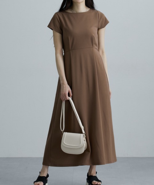 シルエットが綺麗★ウエストタックカットマキシ丈ワンピース■デザイン・ウエスト部分のタックデザインが、自然なくびれを演出し、メリハリのあるシルエットを実現します♪・マキシ丈のフレアシルエットが、体型をカバーしつつ、上品な印象を与えます◎・デイリー使いからお出かけシーンまで幅広く活躍します!■素材お手入れ簡単なカットソー素材を使用■おすすめのスタイリングシアーシャツを羽織るとトレンド感UP!ウエストタックの細見え効果を活かして、オフィスカジュアルにぴったり♪シルエットがキレイなので、1枚さらっと着用で、着映えすること間違いなし!ーーー明日ちょっと褒められる服ーーー大人トレンドを意識したこだわりのアイテムと着こなしでアナタの毎日に輝きを。ただシンプルできれいなだけじゃ物足りない。カジュアルすぎず、スタイリッシュで大人の品性を感じる着こなしに。そんな、こなれたオシャレを楽しむ女性に寄り添う、 新鮮なリアルクローズをご提案します。<仕様>ポリエステル95%・ポリウレタン5% 後ろ涙開きボタン ※照明の関係により、実際よりも色味が違って見える場合があります。またパソコン・スマートフォンなどの環境により、若干製品と画像のカラーが異なる場合もございます。あらかじめご了承のうえ、ご注文ください。透け感:なし伸縮性:あり生地の厚み:普通裏地:なしポケット:なしウエスト:ウエスト紐(前後で対応可能)季節:春・夏シルエット:普通<洗濯方法>手洗い■キーワード20代、30代、40代、きれいめカジュアル、きれかじ、オフィスカジュアル、キレカジ、ファッション、マキシ、レディース、ロング、ワンピース、夏、大人、大人カジュアル、通勤カジュアル