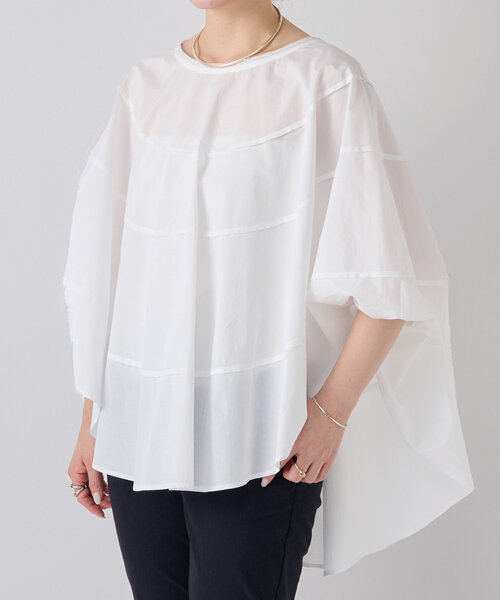 ■アイテム エスカルゴのような螺旋の切り替えが美しいブラウス。 ふんわりとしたポンチョシルエットが魅力です。 軽やかな生地を贅沢に使用することで1枚で女性らしい雰囲気を演出します。 後ろ身頃はお尻が隠れる安心の着丈。 袖口はゴム仕様できゅっとたくし上げることでお好みのバランスで着用をしていただけます。 ■素材・洗濯表示 素材:綿62% ポリエステル38% 洗濯表示:手洗い可 ※着用時・洗濯時は、必ず取扱い表示・タグをご確認の上、お取り扱い下さい。 ---------------------------------- 伸縮性:なし 光沢:なし 厚み:ふつう 透け感:ホワイトあり 裏地:あり ポケット:なし ファスナー:なし ---------------------------------- 《LIVETRT/リヴェタート》 BEARDSLEYのインブランドLIVETART(リヴェタート) 美しい刺繍やレース、しなやかなフォルム、鮮やかな色彩、大胆なプリント。 アートに触れるような心地よい緊張感であらたまった場所へも気負いなく身につけられる。 日常と非日常をつなぐ、いつもより少し高揚感に包まれる服。 《お取り扱い上のご注意》 ・タンブル乾燥不可 ・この製品の一部は、デザイン上意図的に端を断ち切り状態にしています。着用や洗濯を繰り返すことで、端がほつれることがあります。ほつれが気になる場合は無理に引っ張らずその部分をハサミで処理してください。 《予約商品について》 ・サンプルの為、素材情報、洗濯表示については企画段階の情報を記載しております。公的機関での試験データ結果を受け、量産にあたり混率や洗濯方法の変更が発生する場合がございますので、ご了承くださいませ。 ・サンプルでの撮影、計測をしております。商品の仕様が一部変更になる場合がございます。 ・撮影サンプル品はブランドタグがついておりません。製品にはタグがつきますので、製品の表に縫い糸が見える場合がございます。 ・工場の生産の都合上、納期が変更になる場合がございます。検品や輸送の関係で、発送日が前後しますのでご了承ください。また、入荷状況により、お客様への発送が店頭販売より遅れる場合もございます。 ・店頭に陳列していた商品も含まれる場合がございます。 《商品画像について》 ご覧頂いている商品の写真につきましては、できるだけ実物の色に近くなるように努めておりますが お使いの環境(モニター、ブラウザ等)の違いにより、色の見え方が実物と若干異なる場合がございます。 予めご了承ください。 《ハートをタップして商品のお気に入り登録》 登録カラーの商品の「残りわずか」「再入荷」「値下げ」通知を受け取ることができます。 各ショップアプリにてブランドフォロー 新商品などの入荷情報、最新のニュースやお得な情報を受け取ることができます。